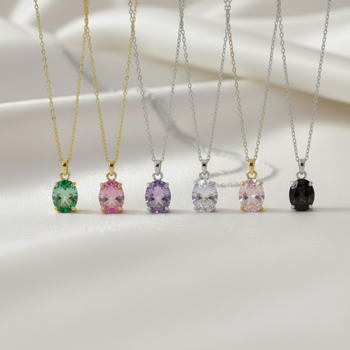 Pulsera de Circonita Ovalada de 8x6mm en Plata de Ley 925 Bañada en Oro de 18K (6 Colores) -